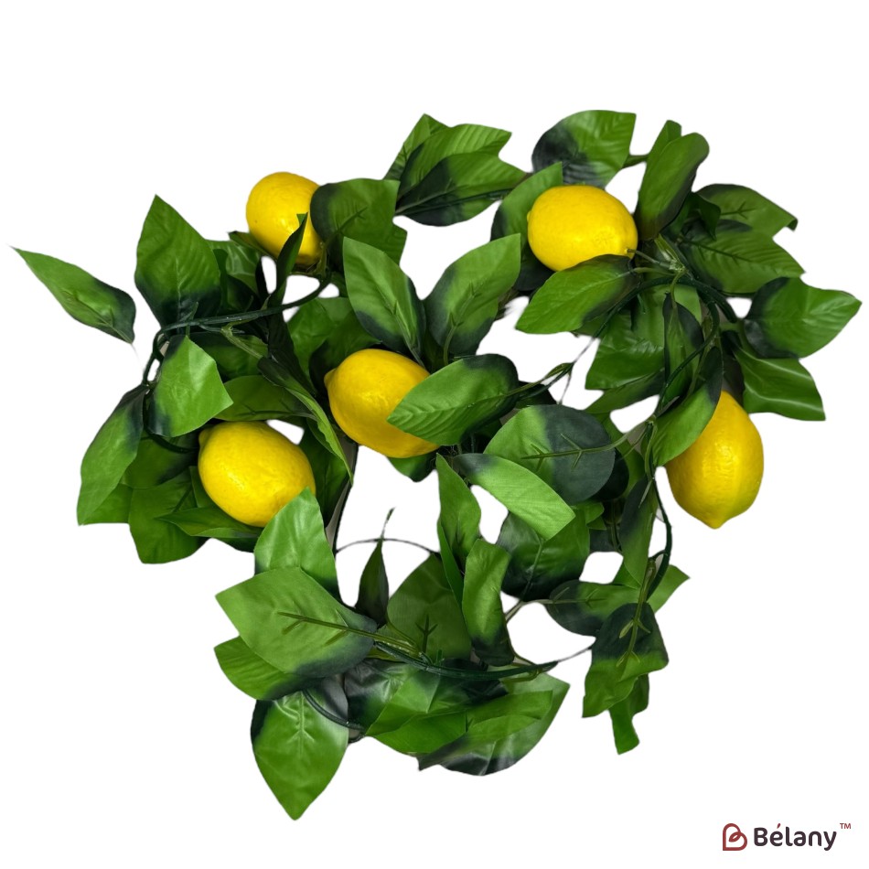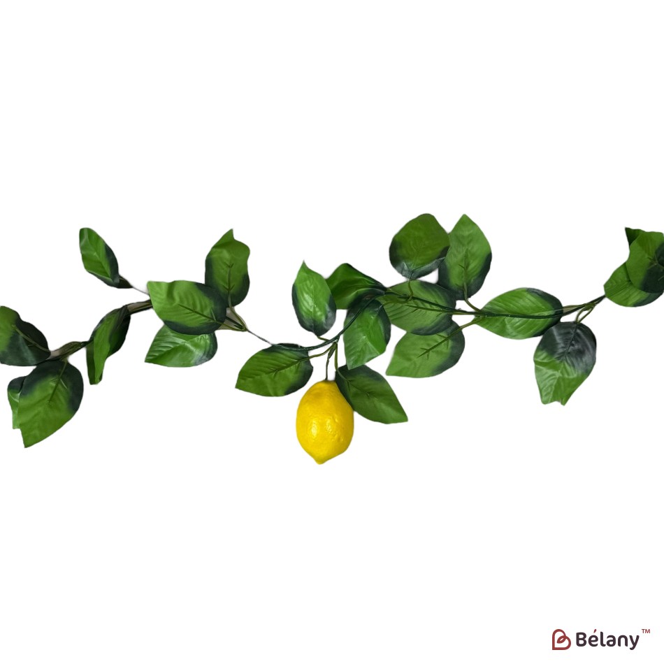 Ghirlandă decorativă artificială cu frunze și 5 lămâi, 2 metri