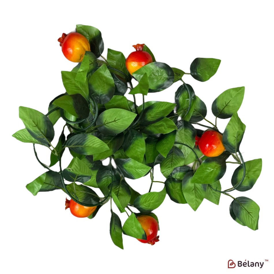 Ghirlandă decorativă artificială cu frunze și rodii, 2 m