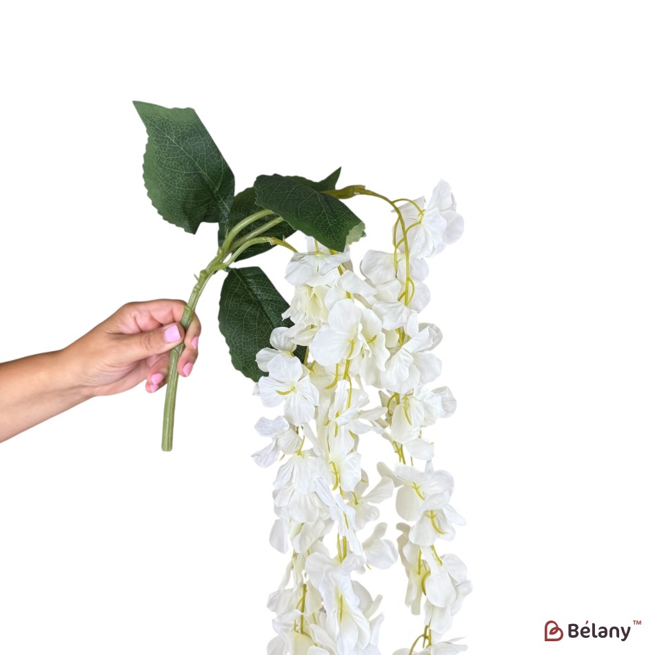 Glicină artificială atârnătoare, 3 ramuri, 1.2 m, albă