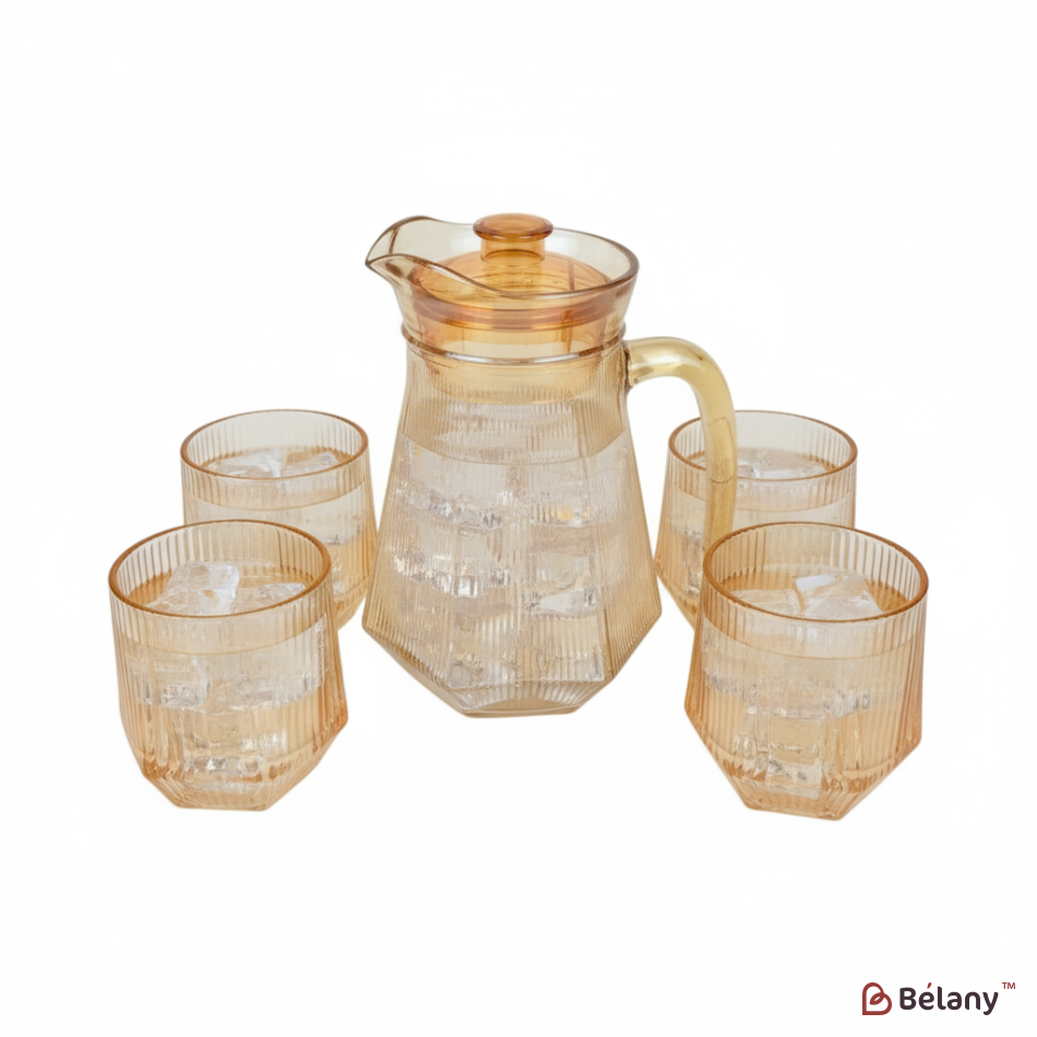 Set ulcior cu 4 pahare – eleganță și utilitate pentru servirea băuturilor de zi cu zi. Acest set este compus dintr-un ulcior cu capacitatea de 950 ml și 4 pahare asortate, toate realizate din sticlă transparentă de calitate superioară. Ideal pentru apă, limonadă, sucuri naturale sau orice băutură rece, acest set combină designul clasic cu funcționalitatea modernă. Ulciorul are un design ergonomic, cu gura largă și mâner solid, fiind ușor de utilizat și de curățat. Paharele sunt confortabile în mână și potrivite atât pentru utilizarea zilnică, cât și pentru servirea oaspeților la mese festive. Sticla este durabilă, rezistentă la uzură și nu alterează gustul băuturilor. Fiecare piesă poate fi spălată în mașina de vase, ceea ce face întreținerea rapidă și eficientă. Material: sticlă. Capacitate ulcior: 950 ml. Număr pahare: 4 bucăți. Potrivit pentru băuturi reci. Ușor de curățat și întreținut. Perfect pentru acasă, picnicuri, grătare sau ca un cadou deosebit. Adaugă rafinament meselor tale și transformă momentele simple în clipe speciale. Comandă acum!