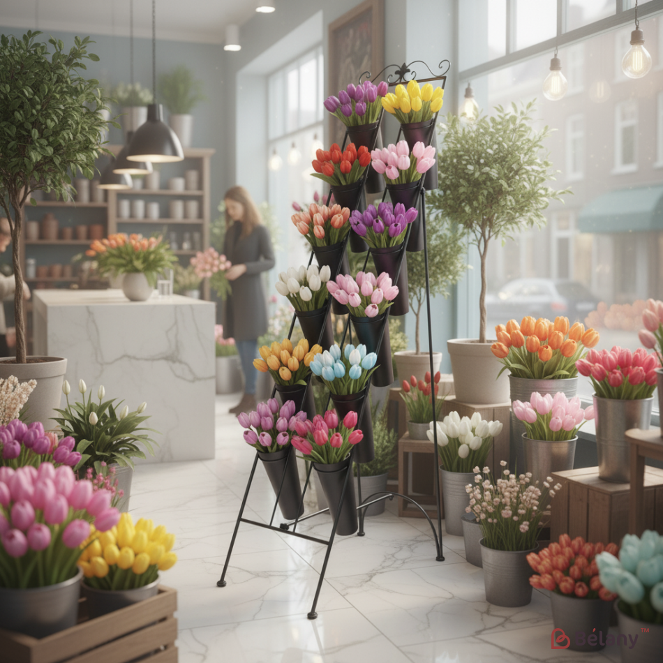 Vitrină florală metalică cu găleți NEGRU 168×100×41 cm, diametru găleată 22 cm