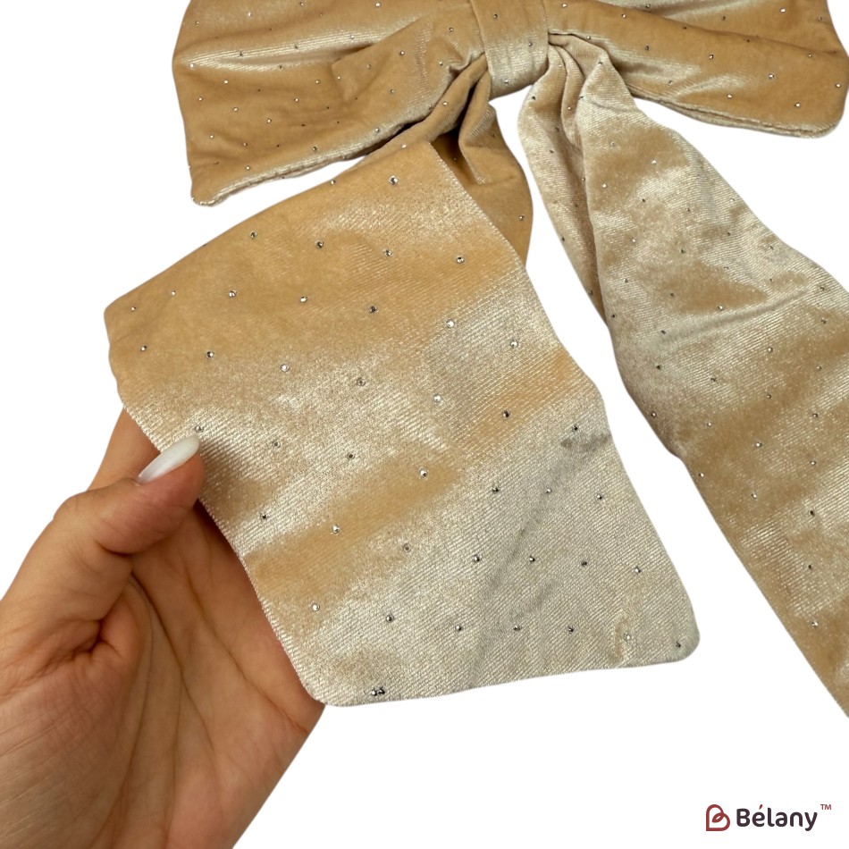 Fundă de Crăciun din catifea cu strasuri, 30×60 cm, aur